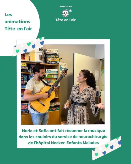 Dimanche 21 septembre, à l’Hôpital Necker-Enfants Malades, la musique 🎶 a résonné dans les couloirs du service de neurochirurgie avec le magnifique duo Nuria et Soufiane (Tournesol, Artistes à l’Hôpital).